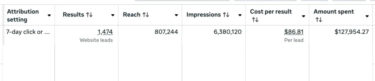 We generated 1,474 qualified leads at a cost per lead of $86.81 using smart targeting and ad optimization. The campaign brought in quality leads and gave a strong return on investment.
