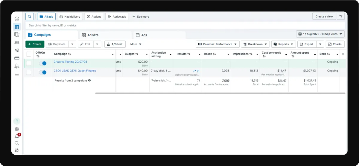 We track leads, conversions, ROI, and engagement using real-time dashboards. This allows us to continuously optimise campaigns for better results and lower acquisition costs.